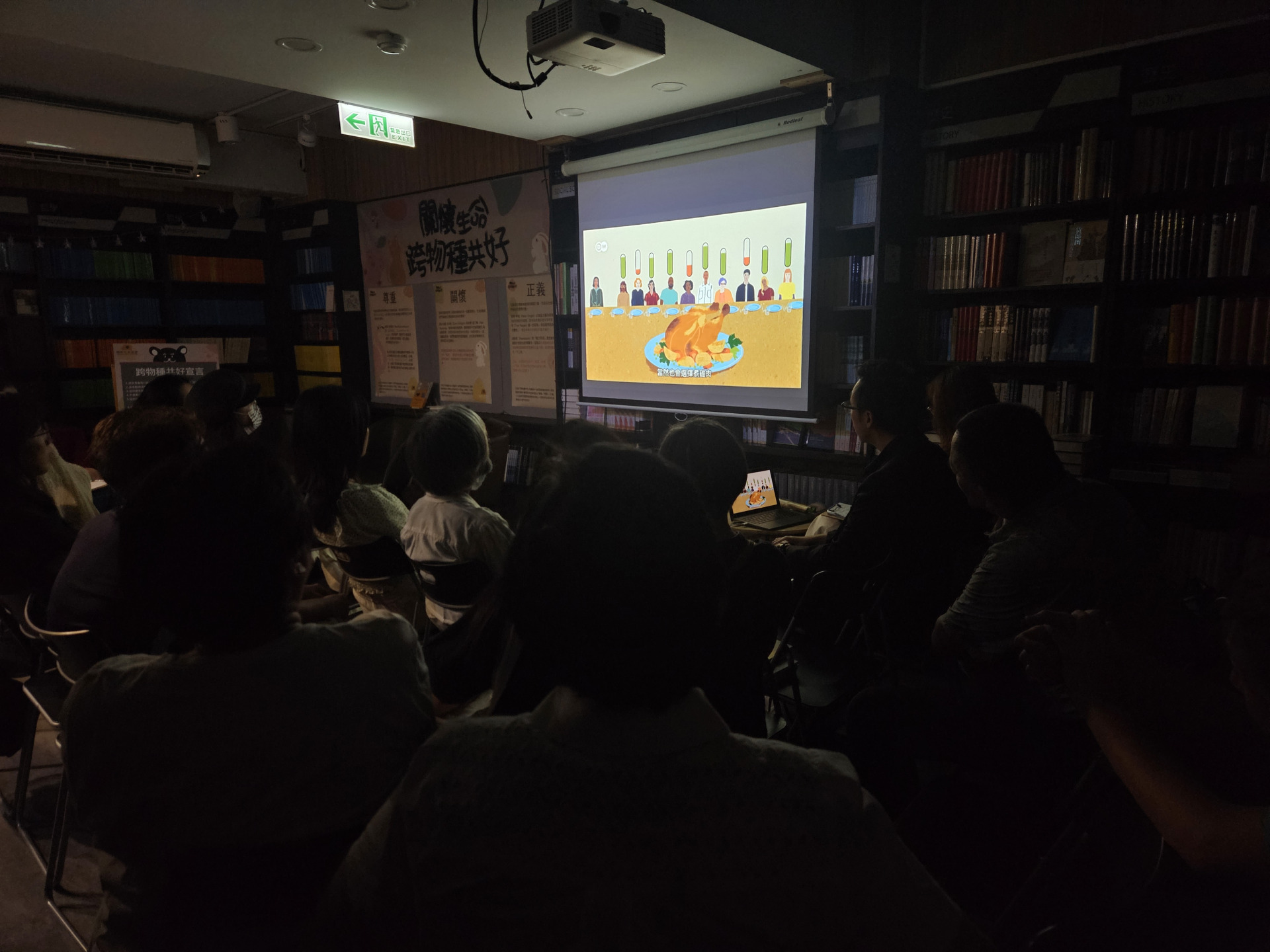 7/29《動物解放:現在就行動》新書導讀會上,也同時舉辦了【跨物種共好影展】《肉食與倫理》的實體放映會,而當影片播放著同時,正驗證了丹娜絲颱風吹出的——