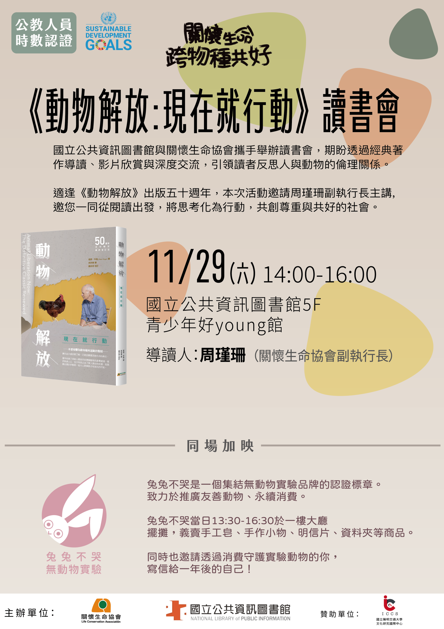 ※參與整場活動有公教人員時數,圖書館一樓還有兔兔不哭擺攤等你來~