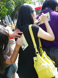 看起來害羞的阿甘發 起明信片一點也不輸人,他發揮阿甘精神,向每位路過的同學細心解釋,即使同學因為趕著上課而拒絕簽名連署,他也不以為意,仍然努力向同學說明。可愛的薛薛 也是超級推銷員,能以最迅速的方式向同學解釋,再以燦爛微笑打動同學,達成最高的明信片回收率。當天天氣非常炎熱,同學們在沒有遮陽的廣場奮力宣導,共計回收96張明信片。