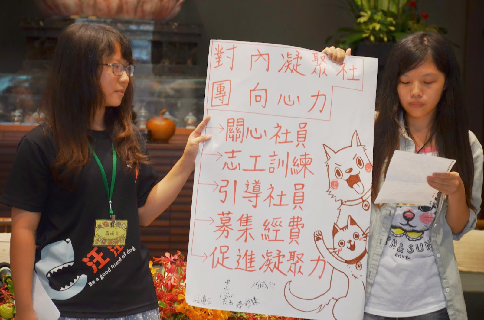 5. 促進心理凝聚力 EX:帶社員一起去餵養或訓練貓狗、定期舉辦社遊。