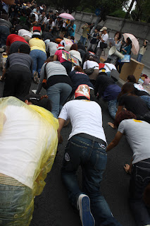 | 支持成立專責動保司的民眾,以苦爬表達其訴求。 攝影/黃筱倫 |
