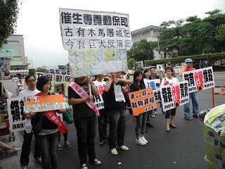 8月中,農委會以「動物業務有這麼多嗎」作為搪塞之辭,9月中農委會鬆口「可以談」,但是遲遲沒有下文,今天,行動聯盟只有訴諸民意,希望馬總統出面關心國家動保制度的改革。所有愛護動物、支持成立專責動保司的民眾,在大雨中苦等消息,最後由十餘名代表及大學動保社團連線的同學將明信片送進總統府。府方回應,最慢7日內回覆大眾的訴求。聯盟表示,選舉將近,尊重生命、熱愛動物的選民都在看,希望馬總統能聽到人民的心聲,支持動保制度改革,成立專責動保司。