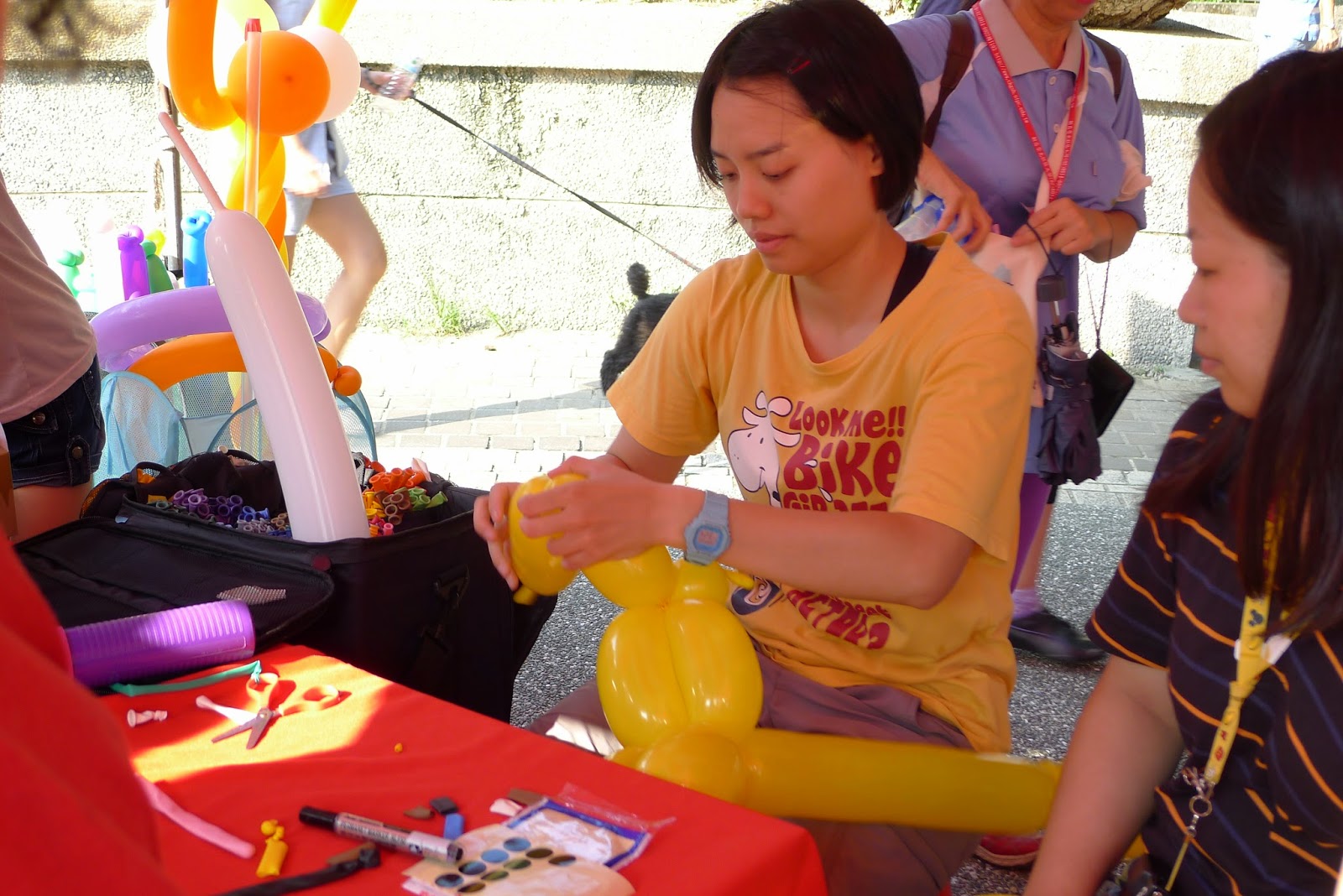 政大尊生社的攤位是「方舟故事屋」,除了發送社團設計的繪本給大人,同學們也親切地向來參加的孩子說故事,孩子們細細聆聽大哥哥大姊姊訴說精彩的故事,對於流浪動物的困境和什麼是"TNR"也有更深入的瞭解。
